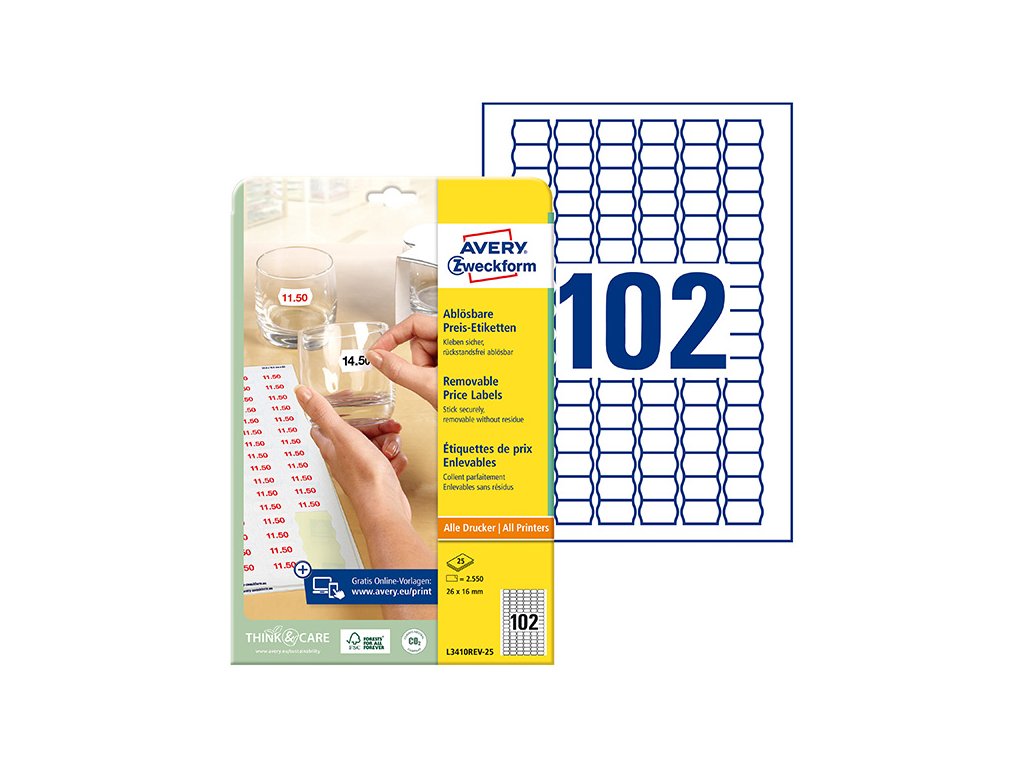 Avery Zweckform L3410REV-25 cenovky bílé 26mm x 16mm baleno po