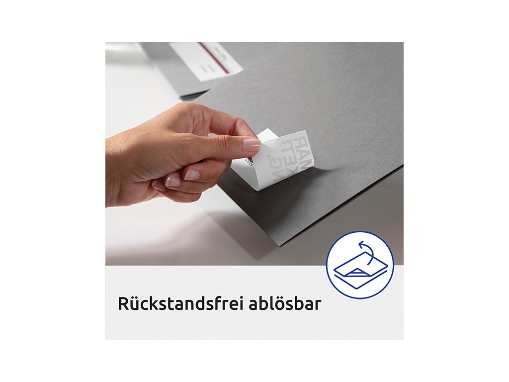 - Snadné několikeré přelepení na často používaných površích (jako jsou složky, elektronická zařízení, sklo, kov a plasty)