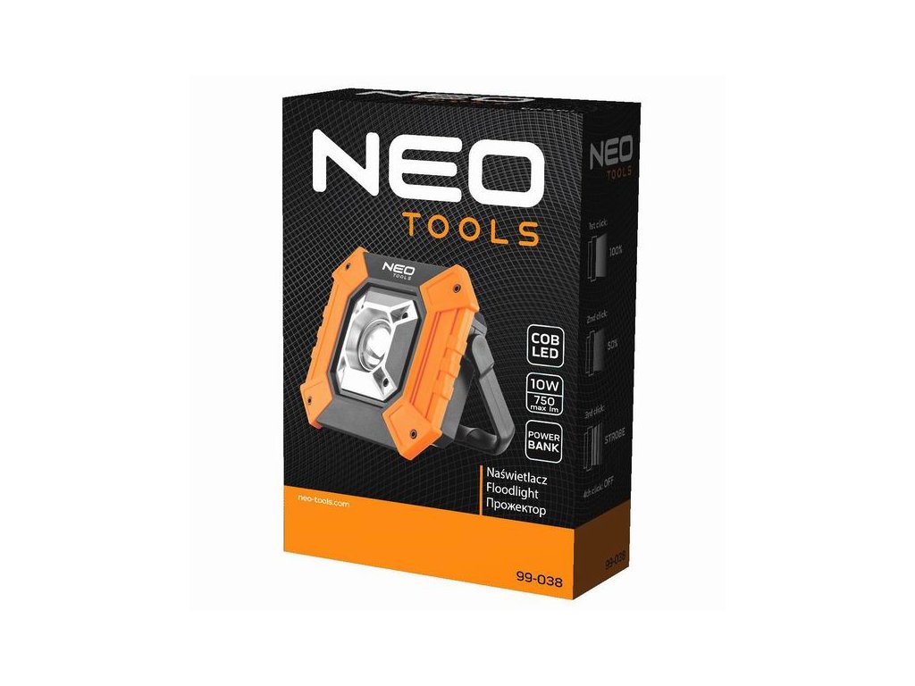 Bateriový reflektor s powerbankou, 10W, 3 funkce, IP20, 750lm, NEO TOOLS