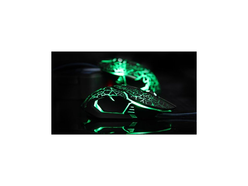 Celé tělo myši křižují podsvícené blesky, takže soupeři na první pohled vidí, že si s vámi není radno zahrávat. Pulzující podsvícení cirkuluje v pěti barvách - červená, modrá, fialová, zelená, oranžová. Podsvíceno je také robustní pogumované kolečko. Tuto myš prostě nepřehlédnete ani v zatemnělé místnosti.