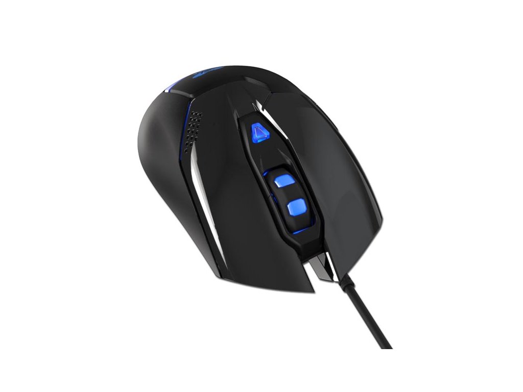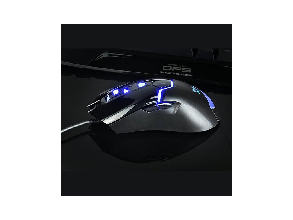 Na několika místech myš vyzařuje tajemné modré LED světlo, aby zvýšila svou atraktivitu pro temné prostředí vaších kanceláří. Podsvíceno je logo E-Blue v dolní části těla myši, efektní detaily ve středu myši, DPI přepínač a pogumované scrollovací kolečko.