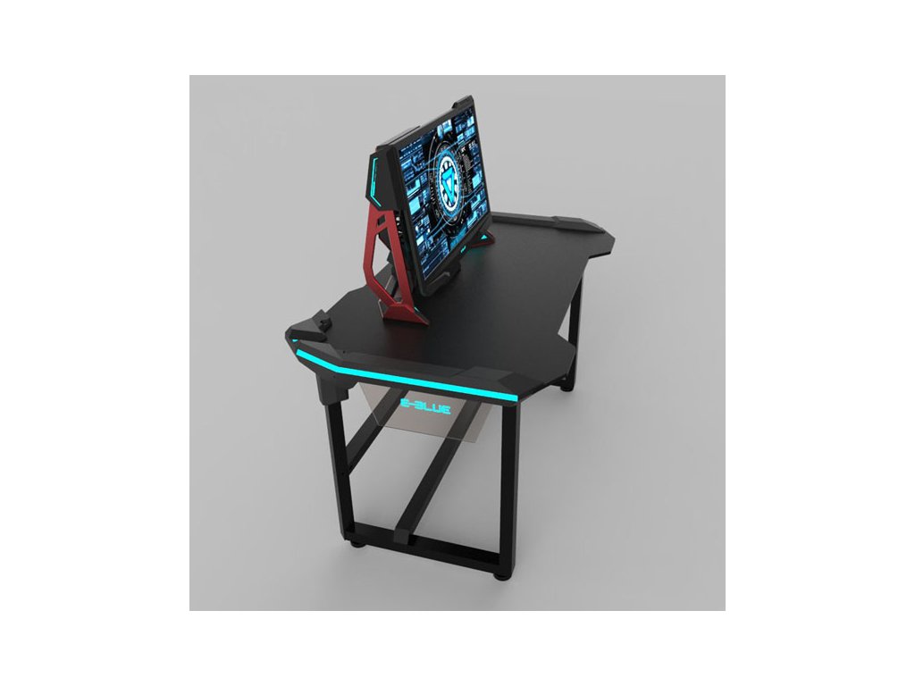 Podsvícený herní stůl E-Blue s bezdrátovým ovladačemPevný a odolný herní stůl vyrobený z kvalitního materiálu dokonale doplní Váš osobní herní koutek. Boční průhledné desky jsou RGB podsvíceny. Ergonomicky designovaná deska stolu zajišťuje optimální vzdálenost očí od monitoru a efektivně zabraňuje únavě očí způsobenou dlouhodobým hraním.