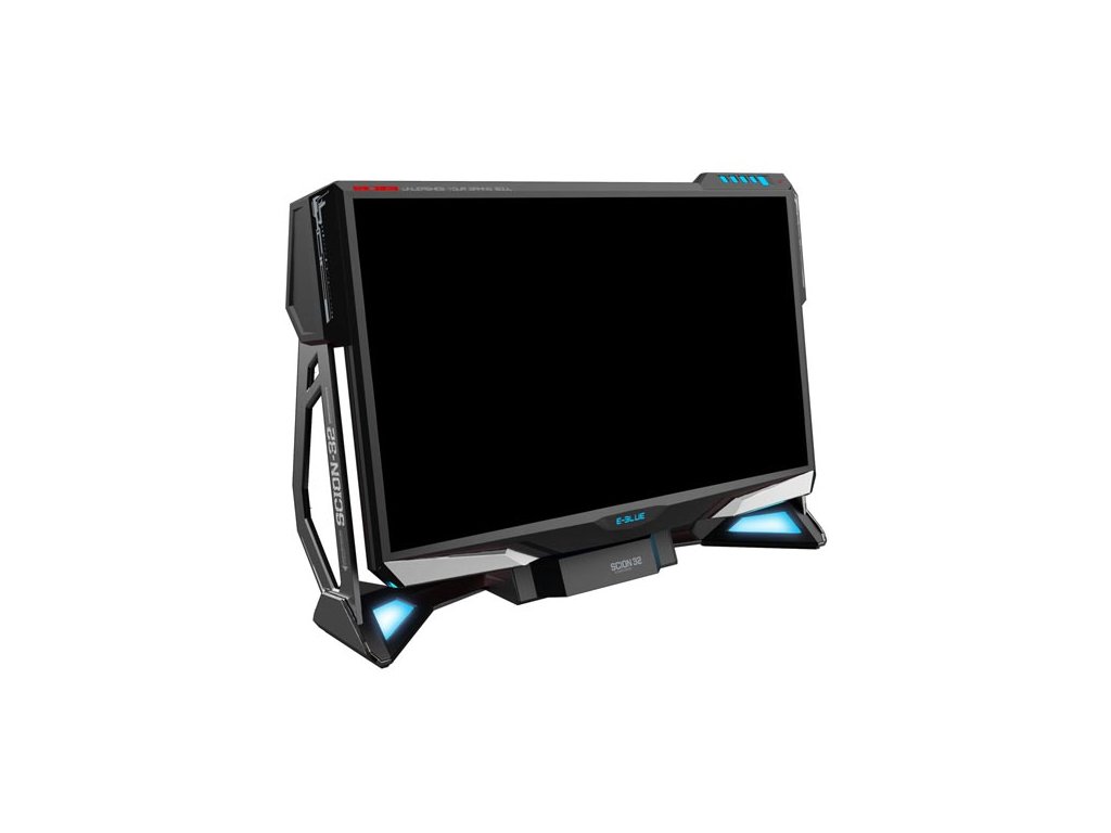 Ani v případě tower monitoru E-Blue nezapomnělo na atraktivní podsvícení. V přední části monitoru jsou jemně podsvíceny boční strany konstrukce monitoru a logo E-Blue. Zadní části dominuje podsvícený kryt hardwarového vybavení.