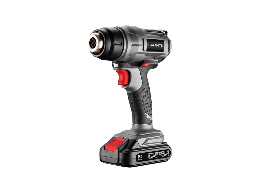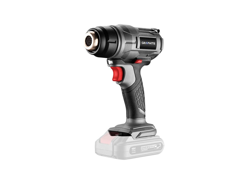 AKUMULÁTOROVÁ HORKOVZDUŠNÁ PISTOLE ENERGY+ 18V, LI-ION, TEPLOTA 550OC, BEZ BATERIEHorkovzdušná pistole na baterie, Energy+, 18 V, Li-Ion, teplotní rozsah 550 ° C, bez dobíjecí baterie, 58G082, GRAPHITE