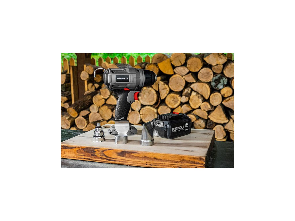 Horkovzdušná pistole na baterie, Energy+, 18 V, Li-Ion, teplotní rozsah 550 ° C, bez dobíjecí baterie, 58G082, GRAPHITE, určená pro práci s horkým vzduchem. Užitečné například pro smršťování teplem smrštitelných materiálů, obložení skleněných tabulí, pájení. Maximální rychlost vzduchu je 200 l/min, maximální teplota je 550 ° C. Pohodlné použití s ??napájením z baterie (baterie není součástí dodávky) a bez kabelů, horkovzdušnou pistoli lze použít za jakýchkoli podmínek a mimo dílnu nebo dům. Zařízení je lehké. Sada obsahuje 3 trysky.