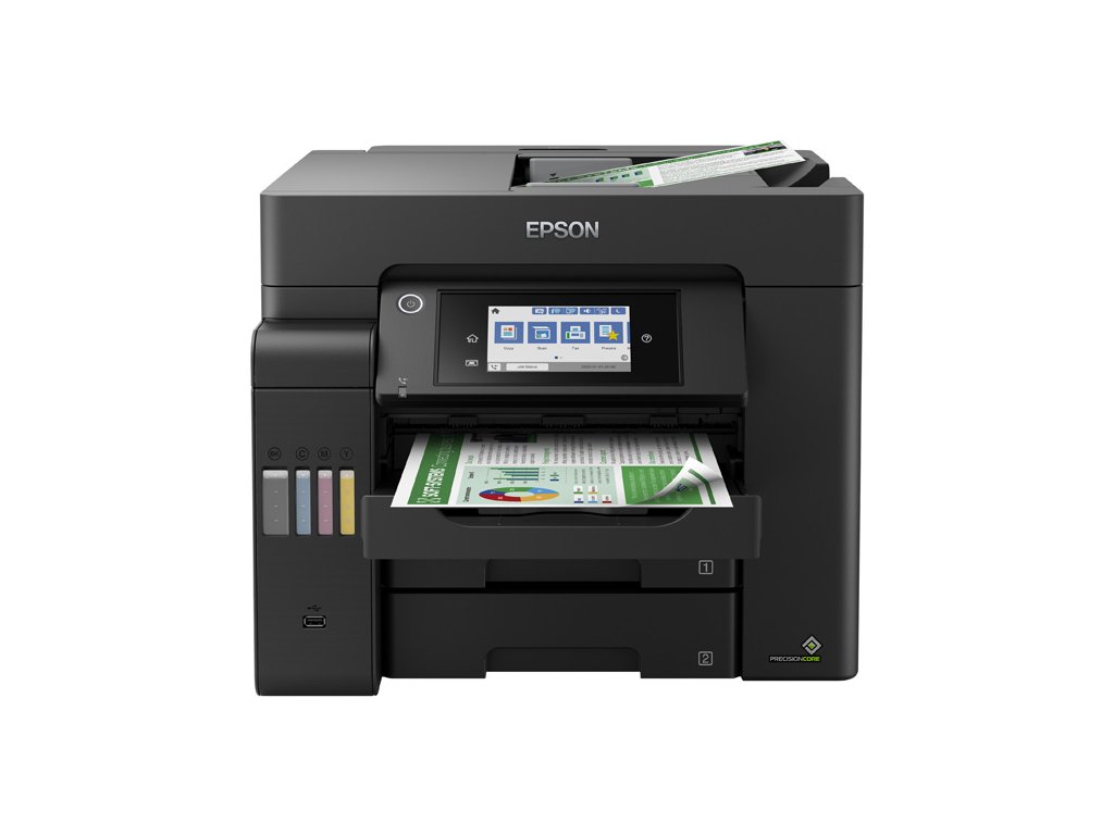 S touto snadno použitelnou tiskárnou EcoTank můžete tisknout, skenovat, kopírovat a faxovat dokumenty při opravdu výjimečně nízkých nákladech na jednu stránku. Veškeré úlohy lze zvládat rychle díky vysoké rychlosti tisku a skenování, dvěma předním zásobníkům na 250 listů, zadnímu podavači na 50 listů a automatickému podavači dokumentů o kapacitě 50 listů. Díky funkcím mobilního tisku, Ethernet připojení a dotykovému LCD displeji s úhlopříčkou 10,9 cm můžete tisknout tak, jak právě potřebujete.