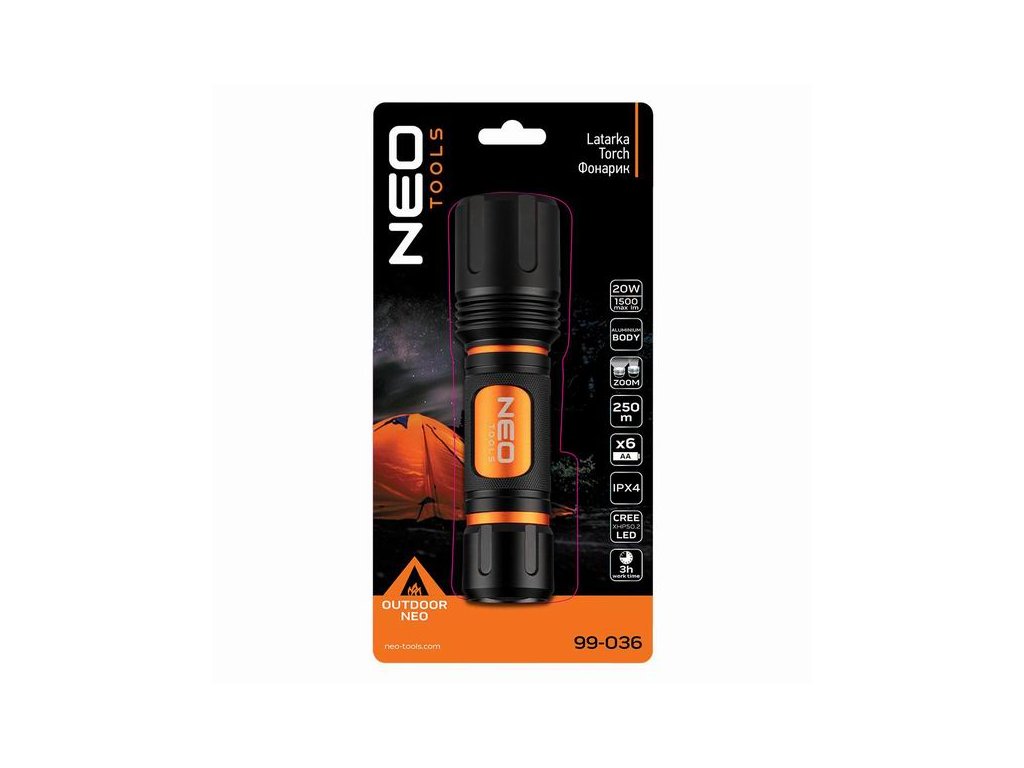 Bateriová svítilna vybavená 20W CREE HP50.2 LED (1500 lumenů). Má maximální dosah svícení 250 m. Svítilna je napájena 6 AA bateriemi (nejsou součástí balení). Svítilna má 3 funkce svícení: 100%, 20%, stroboskop. IPX4 poskytuje ochranu proti stříkající vodě z jakéhokoli směru. Tělo svítilny je vyrobeno z hliníku