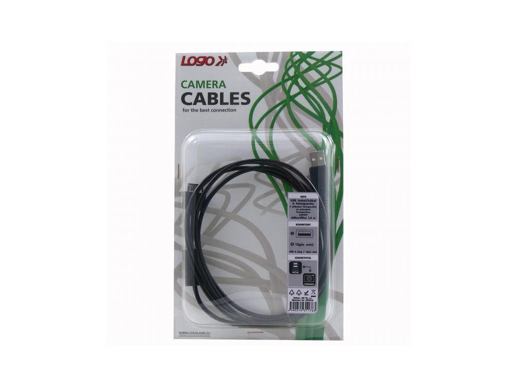 Kabel USB (2.0) - USB A M - 12pin M - 1.8m, černý, Canon, LOGO blistrUSB 2.0 kabel s konektory USB A M a 12pin M. Baleno v LOGO blistru.