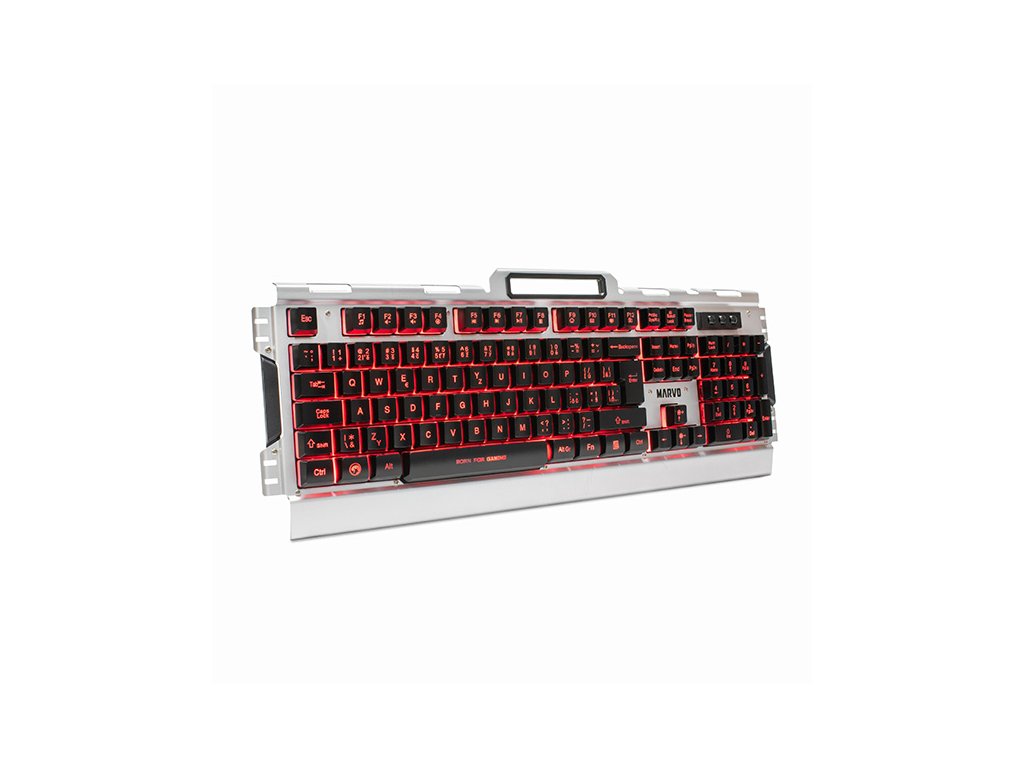 Tělo této membránové klávesnice je vyrobeno z kovu. Oproti běžným plastovým klávesnicím je proto velmi odolná a díky své vyšší hmotnosti a protiskluzovým podložkám na spodní straně dobře drží na svém místě. Abyste klávesnici mohli využít také pro běžnou práci na PC, disponuje CZ/SK rozložením. Pro snadné ovládání přehrávače médií nebo vyvolání e-mailu obsahuje 12 multimediálních kláves. Díky 19 klávesám s funkcí antighosting se už nemusíte bát zbrždění v případě stisku několika kláves současně. Na horním okraji klávesnice se nachází otvor, který skvěle slouží jako stojánek na smartphone. Podsvícení si můžete zvolit ze tří barev.