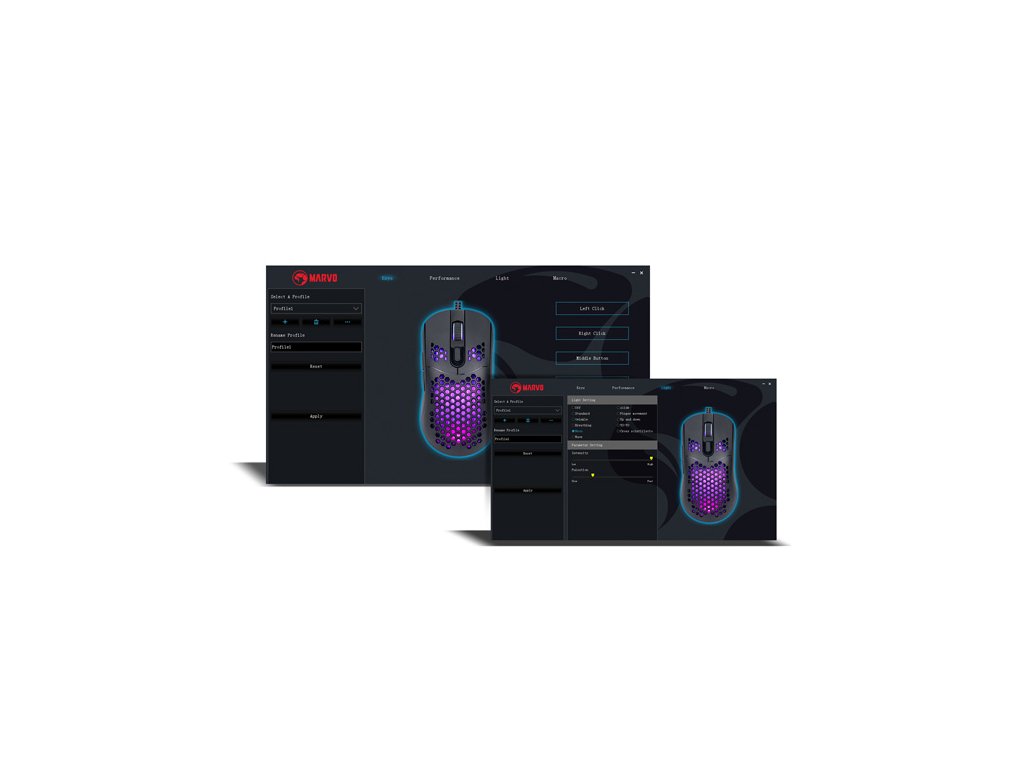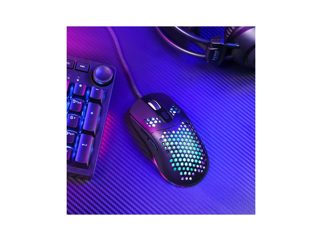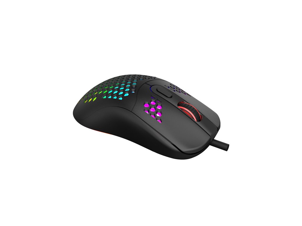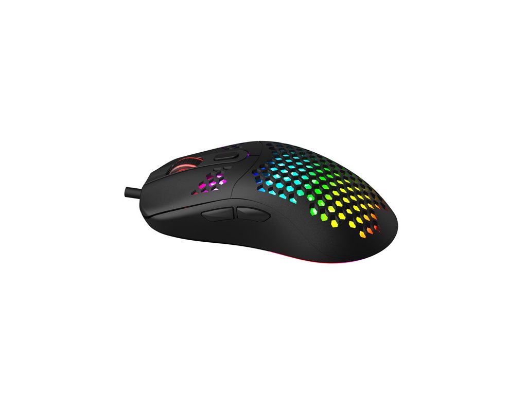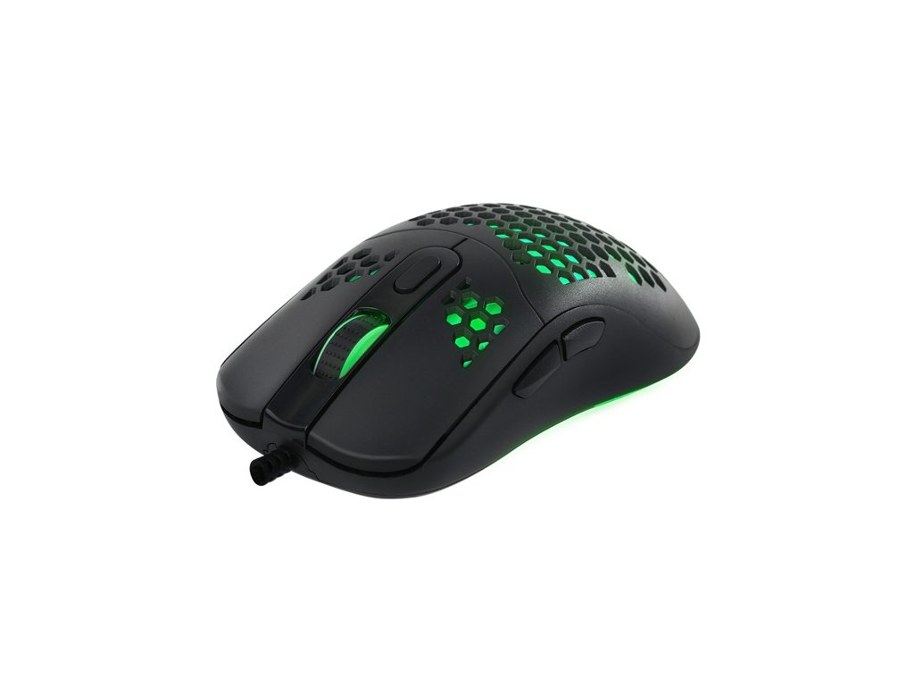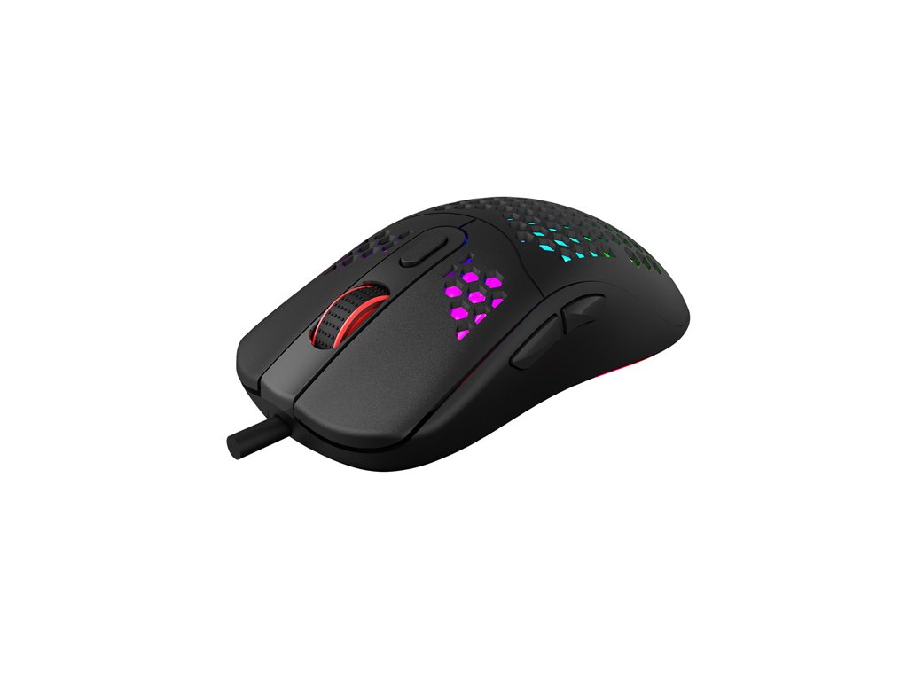 Herní myš Marvo G925Optická herní myš Marvo G925 je ultralehká, díky speciálnímu perforovanému designu, který připomíná včelí plástve (Honeycomb design). Díky tomu váží pouhých 70 g a je proto snáz ovladatelná při hře. Při dlouhodobé práci a hrách, proto nebudete pociťovat únavu. Oku bude lahodit RGB podsvícení myši.
