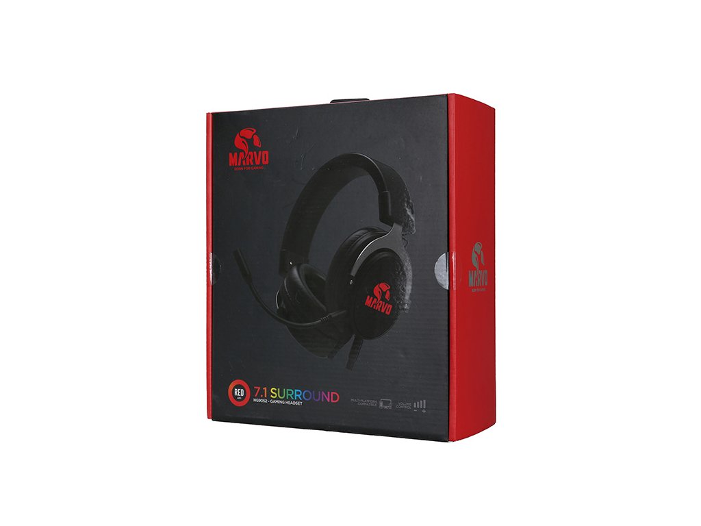 7.1 herní sluchátka HG9052 PRO s odnímatelným mikrofonemHerní sluchátka Marvo HG9052 PRO nabízí excelentní audio kvalitu a silné basy. Měkké náušníky a nastavitelná čelenka zaručí, že sluchátka budou pohodlně sedět i při dlouhých hodinách hraní. Hlasitost jde snadno ovládat díky ovladači na kabelu. Speciální vychytávkou sluchátek jsou odnímatelné kabely včetně mikrofonu. Vše nepotřebné tedy můžete ze sluchátek lehce odpojit. Pro líbivý design je logo škorpióna na nášnících podsvíceno červenou barvou.