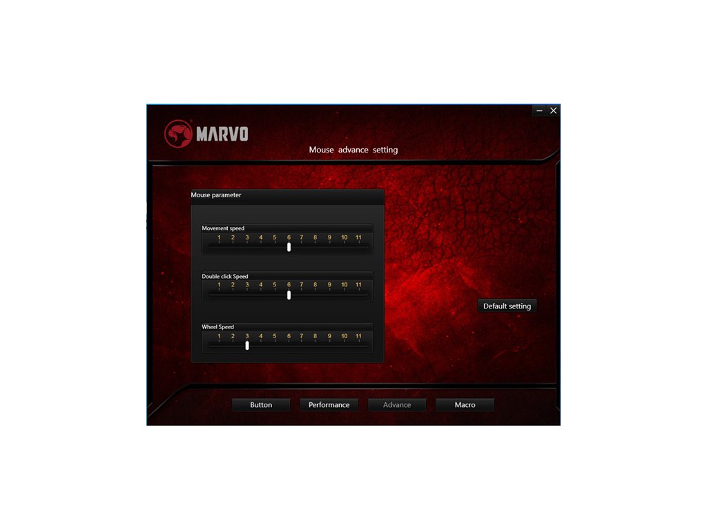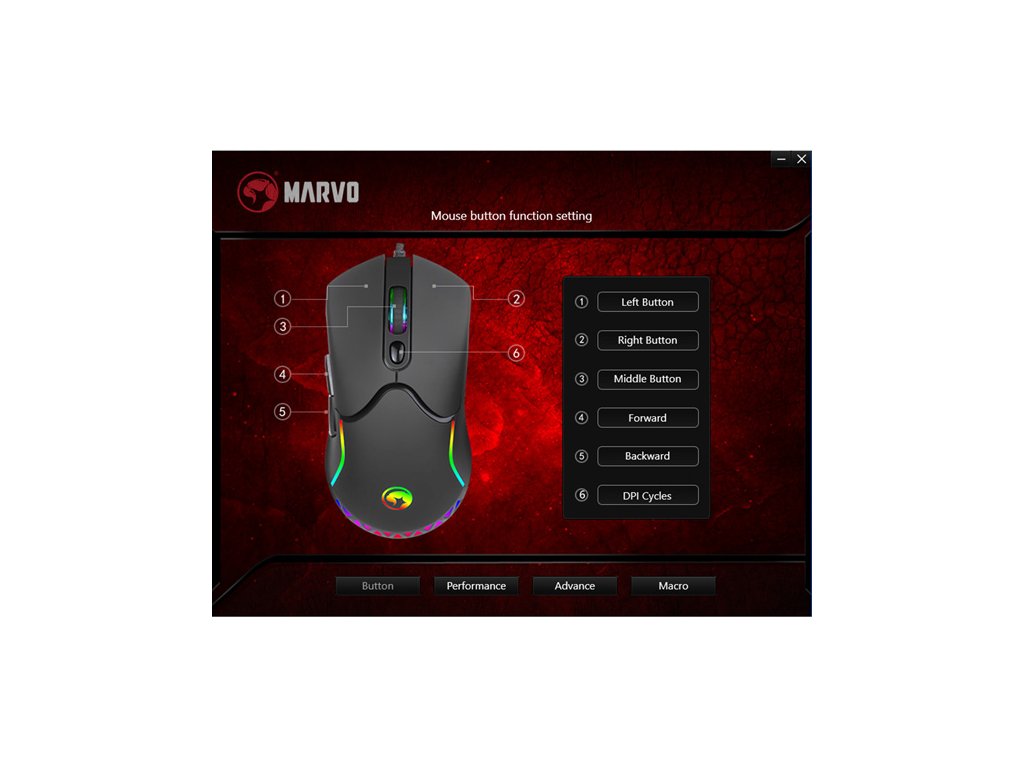 Pro pokročilou konfiguraci myši si můžete stáhnout a nainstalovat  specializovaný ovladač z www.marvogaming.eu.