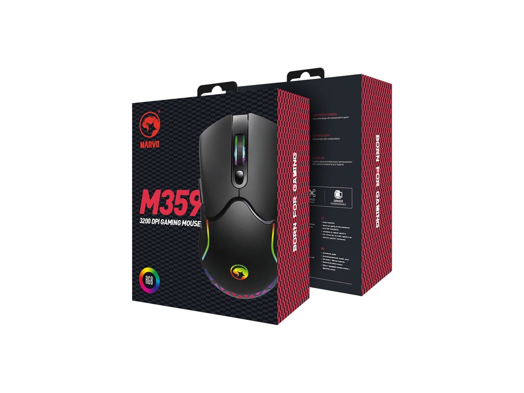 Optická herní myš Marvo M359 má nízkoprofilový design s podporou dlaně. Je vhodná pro všechny styly úchopu a Vy tak budete mít perfektní kontrolu, nad každým pohybem. Oku bude lahodit decentní RGB podsvícení. Pokud si k myši zároveň nainstalujete software, můžete si ji dokonale vyladit podle svých představ. Tato myš je ultra lehká, važí pouze 75 g.