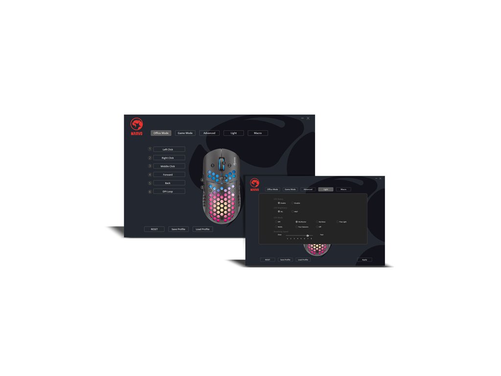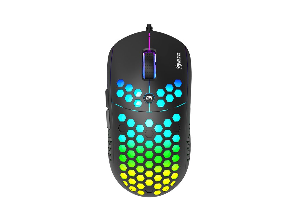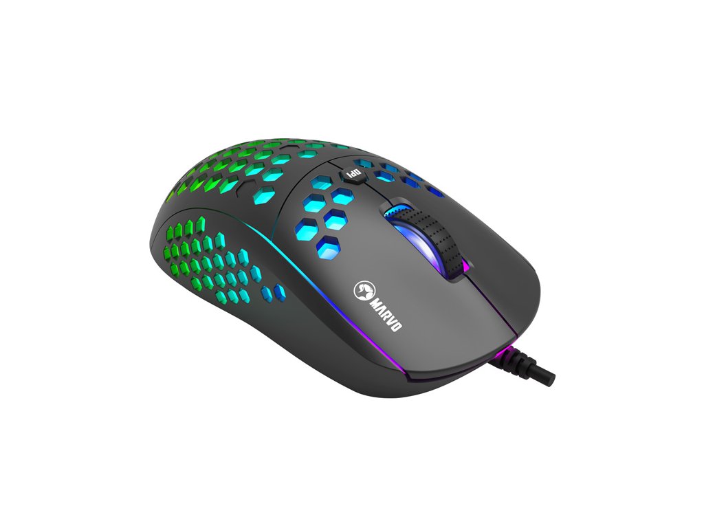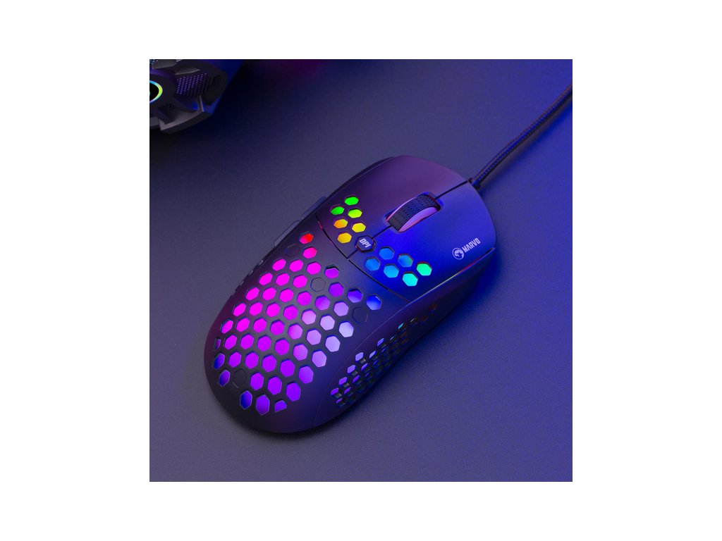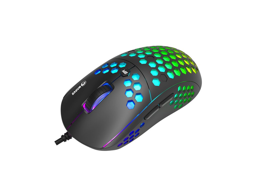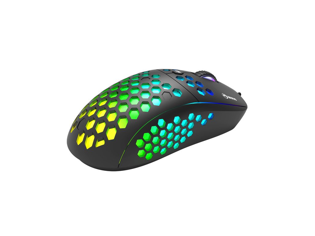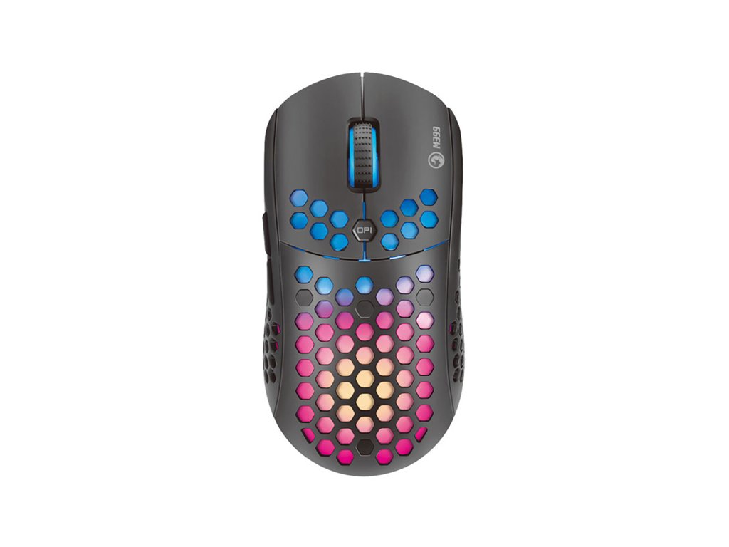 Herní myš M399Velkou výhodou této herní myši je její hmotnost. Díky perforovaného designu připomínající včelí plástve (Honeycomb design), který dodává myši také jedinečnost, je váha pouhých 76 g. Proto s ní lze během hraní snadněji manipulovat. Při dlouhodobé práci a hrách nebudete pociťovat únavu. Ergonomický tvar zajišťuje podporu dlaně, což je její velkou výhodou. Oku bude lahodit RGB podsvícení.
