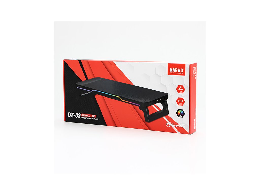 Marvo Podstavec pod monitor DZ-02 3x USB-A,1x USB-C černý plast 20 kg nosnost Rainbow podsvíce