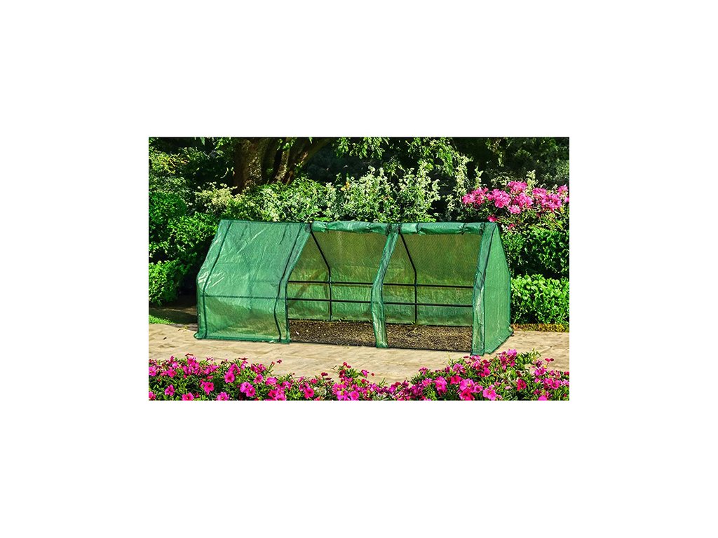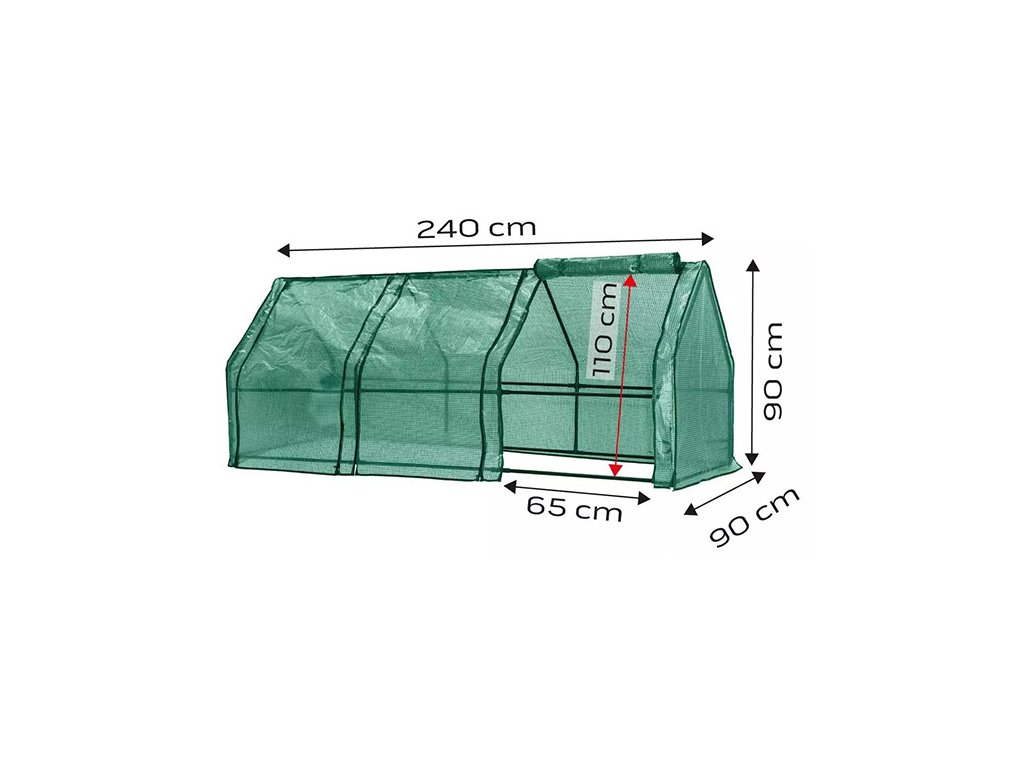 Pro použití doma i venku skleník s kovovou konstrukcí a PE fólií značky NEO TOOLS. Jeho rozměry jsou 240 x 90 x 90 cm. Skleník nabízí výborné podmínky pro růst bylinek, zeleninových a ovocných sazenic. Pohodlně se zapíná na zip - navíc má i možnost srolovat otvory v boční stěně.