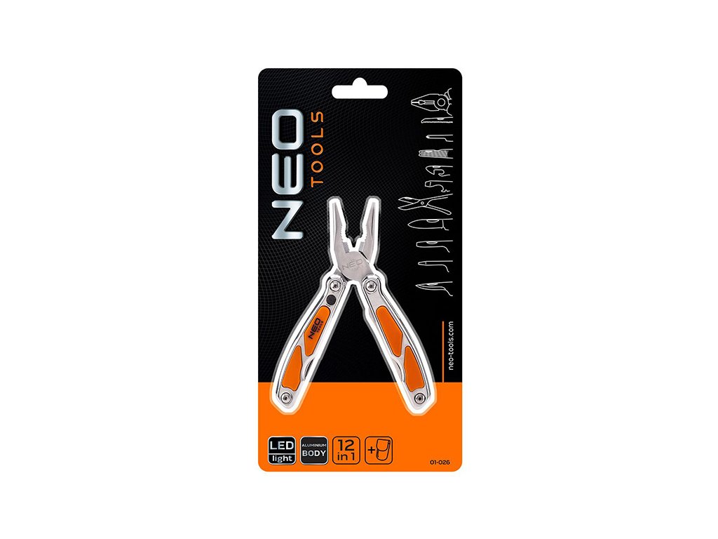 Multifunkční nástroj NEO (ref. 01-026) je inovativní řešení. V jednom nástroji je 13 různých funkcí, např. nejoblíbenější šroubovák PH2, ostrý nůž nezbytný v mnoha situacích a ploché šroubováky různých velikostí. Umístěno v praktickém pouzdře vyrobeném z odolného nylonu pro snadnou přepravu a skladování. Značka NEO splňuje očekávání profesionálů.