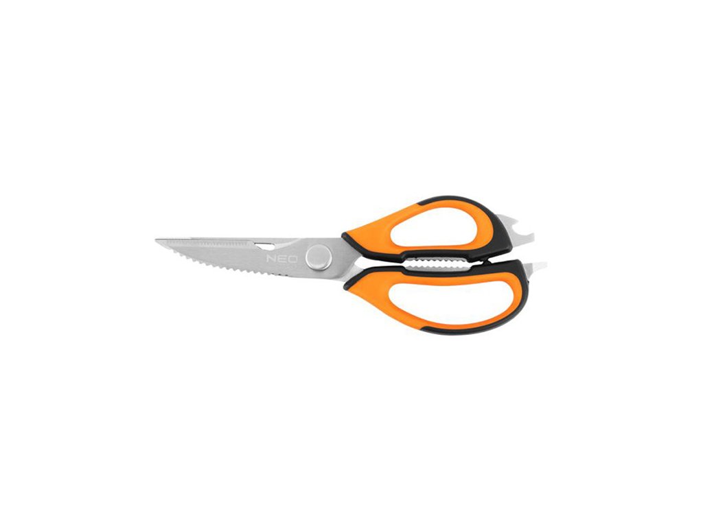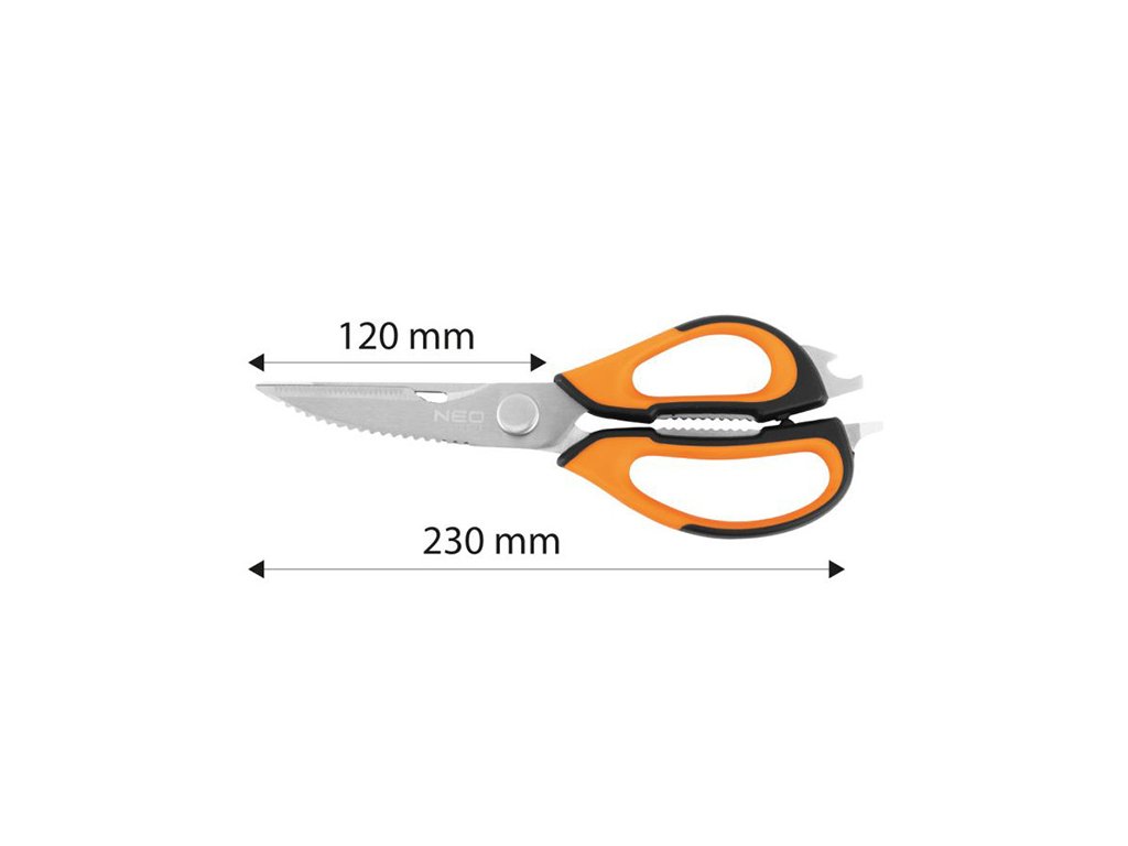 Nůžky 230 mm 6v1, 64-001 od NEO jsou nůžky dlouhé 230 mm a nabízí 6 funkcí v jednom nástroji. Mají praktickou dvousložkovou rukojeť a tělo, které se rozkládá na dvě části. Mohou plnit úkoly louskáčka na ořechy, otvíráku na lahve, otvíráku na kartony, škrabky a pilníku. Osvědčí se doma, v garáži nebo v dílně. Vysoká odolnost nůžek NEO vám bude sloužit po mnoho let používání.