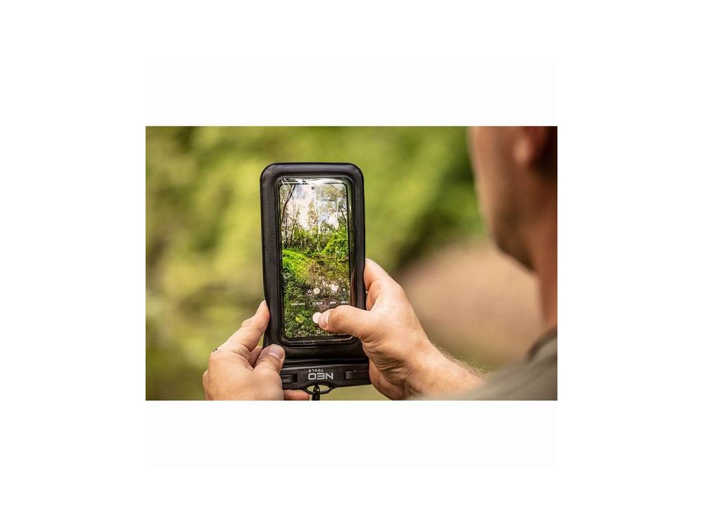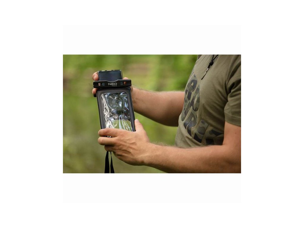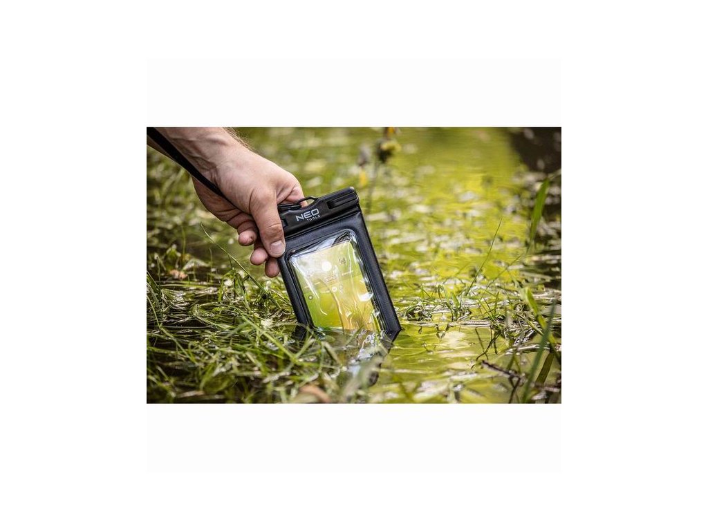 Vodotěsné pouzdro NEO (ref. 63-135) je vyrobeno z materiálů PVC a ABS. Poskytuje ochranu proti vodě s hodnocením IPX8. Pouzdro je určeno pro zařízení s maximálním průměrem 6,2”. Rozměry produktu: 19,5 x 11 cm