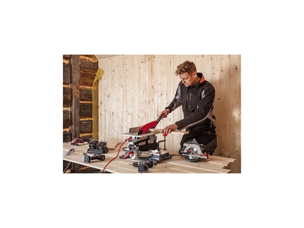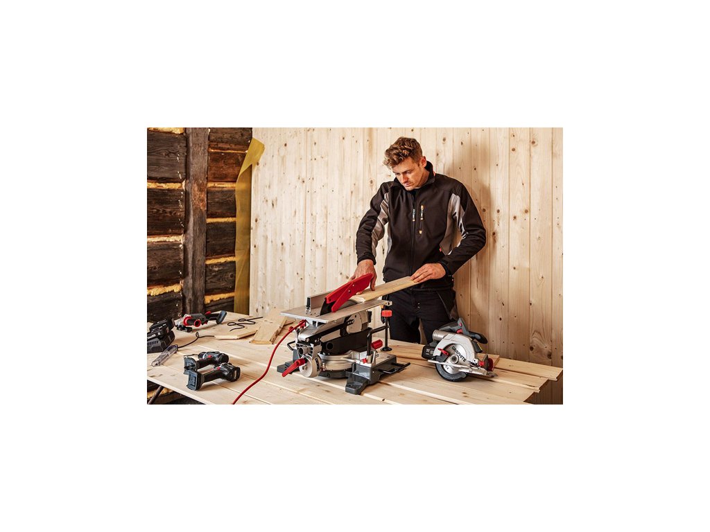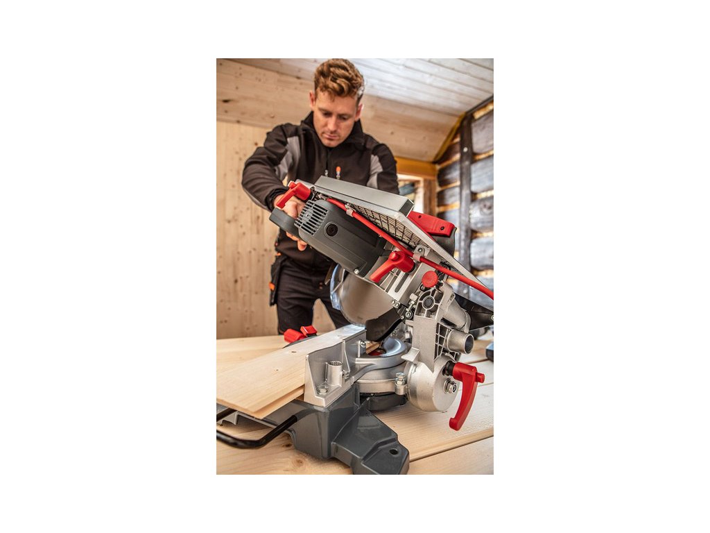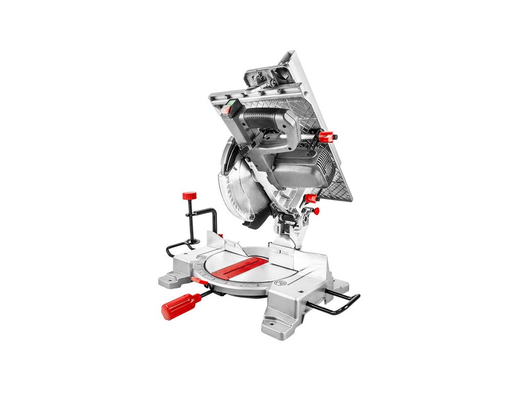 Univerzální pila s výkonem 1600W, určená pro řezání a zpracování dřeva a dřevu podobných materiálů. Jedná se o zařízení "2 v 1" - může fungovat jako pokosová nebo stolní pila, což umožňuje provádět příčné i podélné řezy. V obou rovinách můžete řezat pod úhlem 0 až 45?. Maximální otáčky řezného kotouče jsou 4800 ot./min. Pracovní stůl zařízení je vyroben z hliníkové slitiny, což má vliv jak na jeho odolnost, tak na přesnost řezů. Bezpečnost a pořádek na pracovišti zajistí elektromagnetický spínač a systém odsávání třísek. Nářadí je vybaveno pružným a pevným napájecím kabelem v pogumovaném provedení o délce 3 m, určený také pro profesionální a průmyslové aplikace pro použití v interiéru i exteriéru.V sadě s pilou je: svislá svěrka, pokosový měřič + příčné pravítko, trhací pravítko, vložka pro odsávání pilin, tlačník.