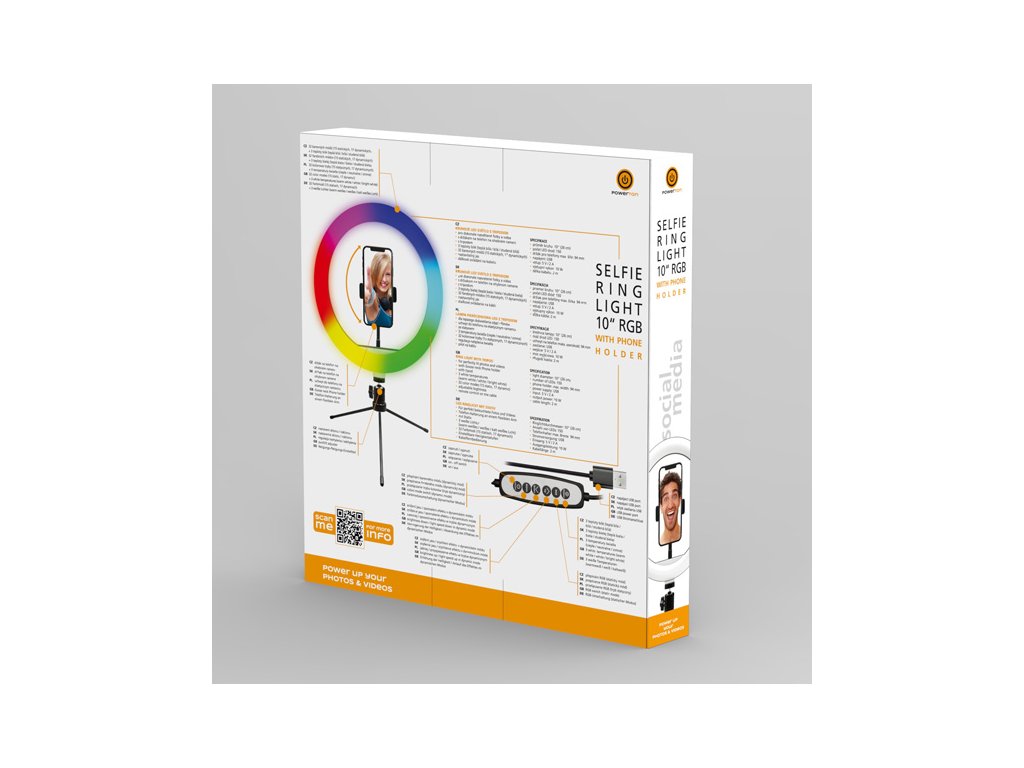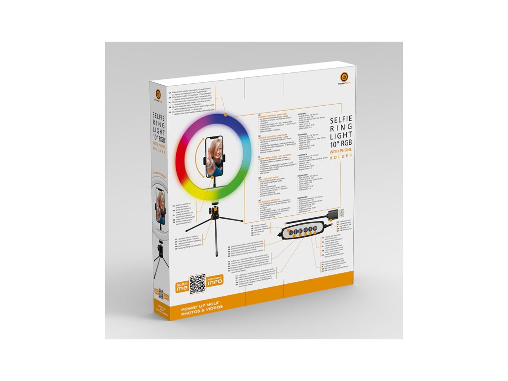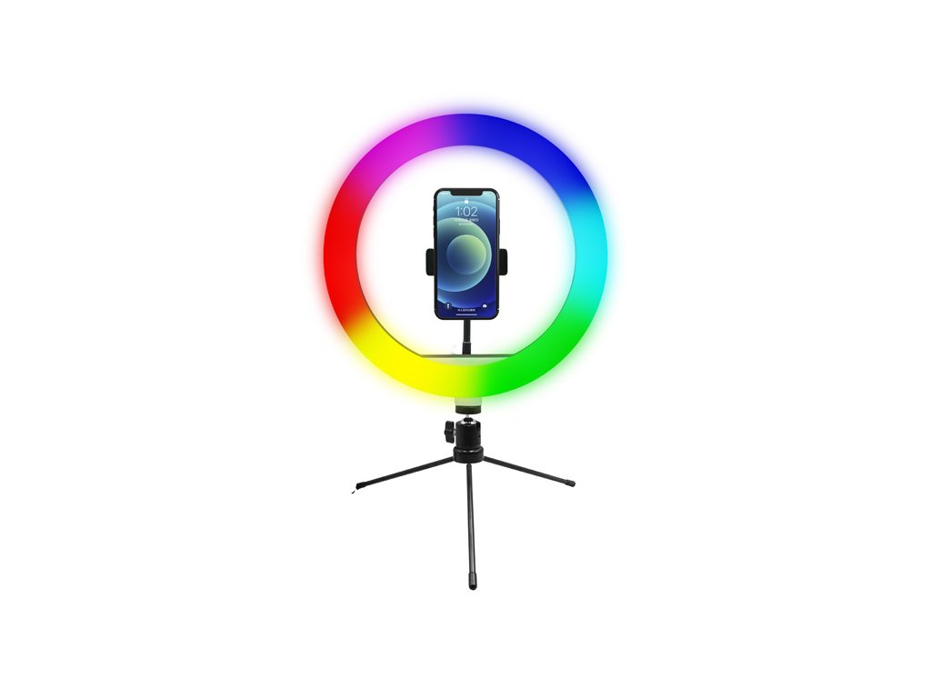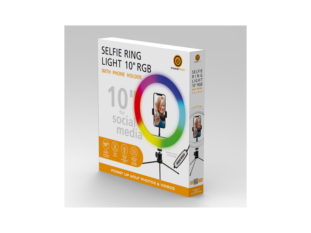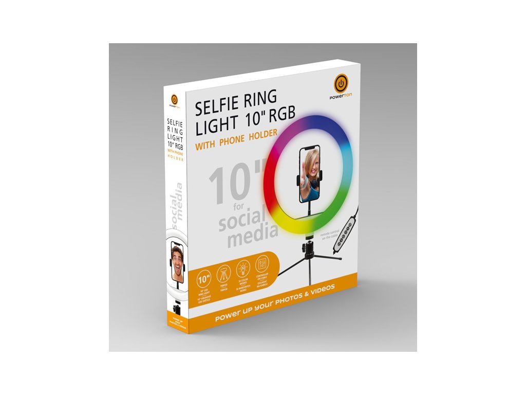 Powerton LIFE RING LIGHT Kruhové světlo 10" RGBFotíte rádi selfie nebo natáčíte videa na sociální sítě? Pak potřebujete profesionální nasvětlení, které Vám dodá jiskru v oku. Kruhové RGB LED světlo s tripodem a držákem na telefon dokonale rovnoměrně nasvítí Váš obličej. Střídat můžete různé barvy nasvícení včetně teploty bílého světla a samozřejmostí je regulace úrovně jasu. To vše si pohodlně nastavíte přes dálkový ovladač.