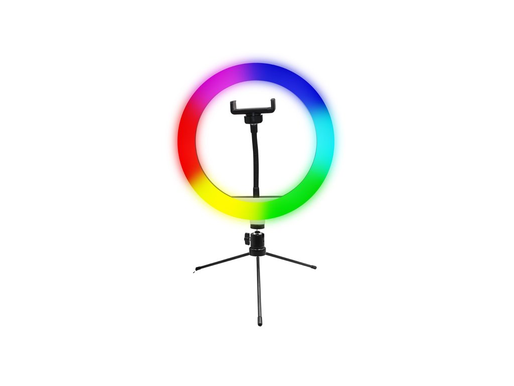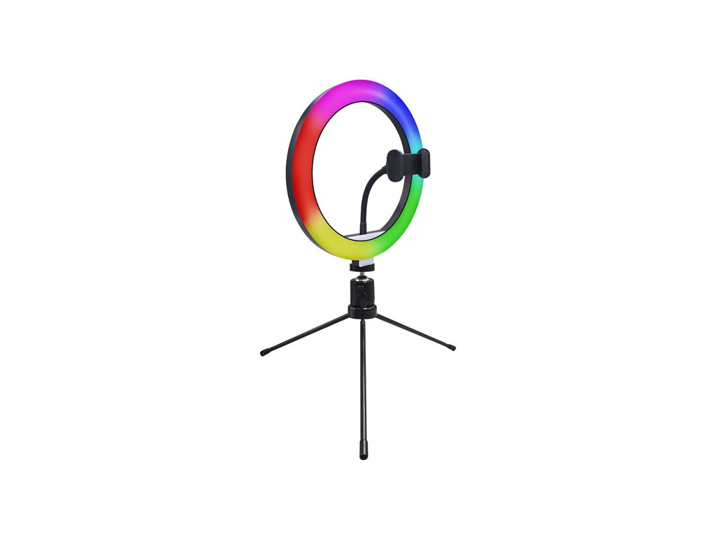 Powerton kruhové světlo 10" RGB LED malé nastavení barev a svítivosti držák telefonu a tripod
