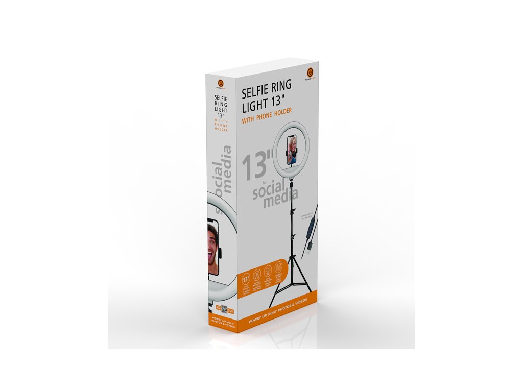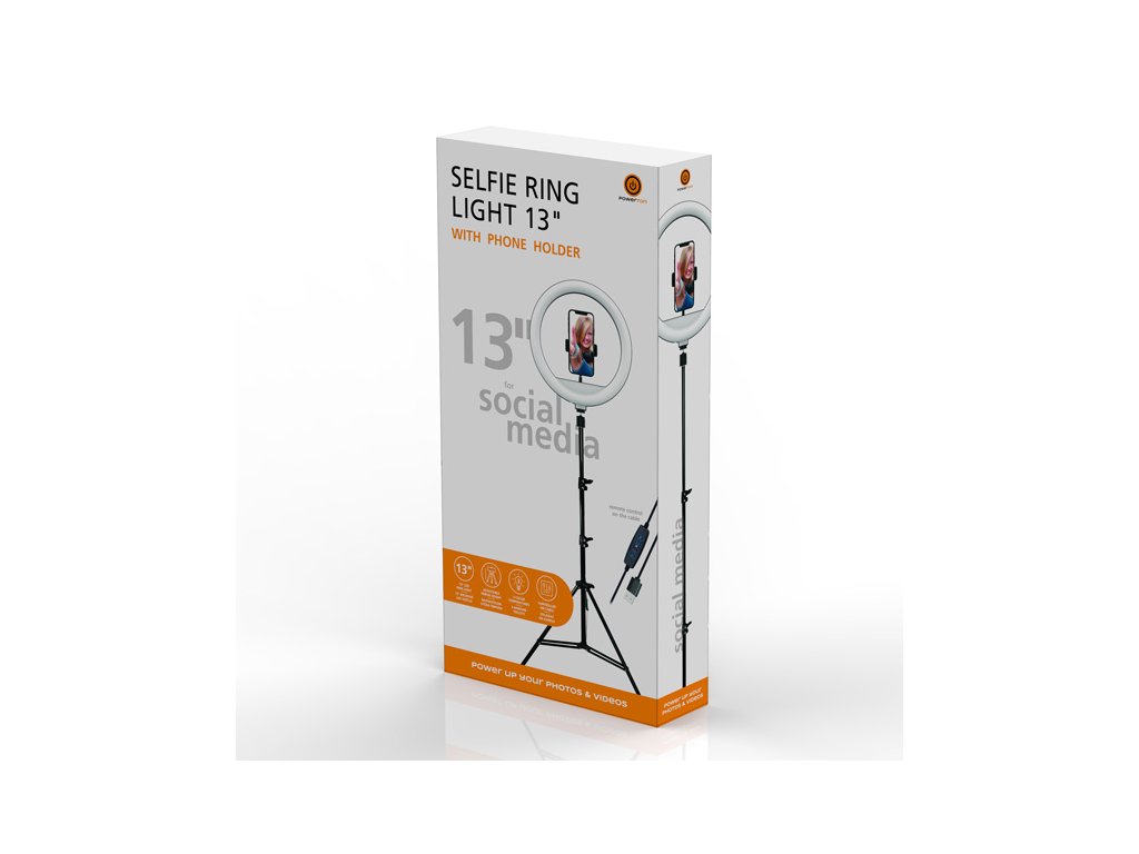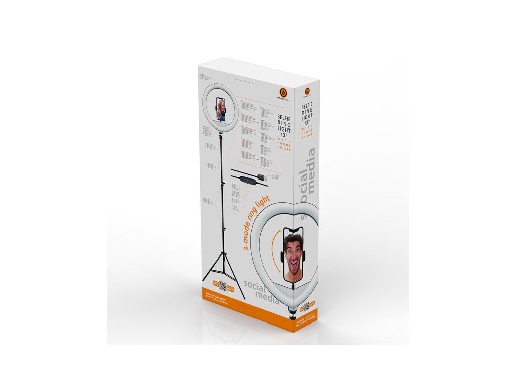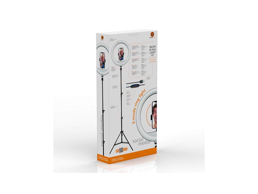 Powerton LIFE RING LIGHT kruhové světlo 13Fotíte rádi selfie nebo natáčíte videa na sociální sítě? Pak potřebujete profesionální nasvětlení, které Vám dodá jiskru v oku. Powerton LIFE RING LIGHT kruhové LED světlo s tripodem s nastavitelnou výškou a držákem na telefon dokonale rovnoměrně nasvítí Váš obličej. Střídat můžete různé teploty bílého světla a samozřejmostí je regulace úrovně jasu. To vše si pohodlně nastavíte přes dálkový ovladač.