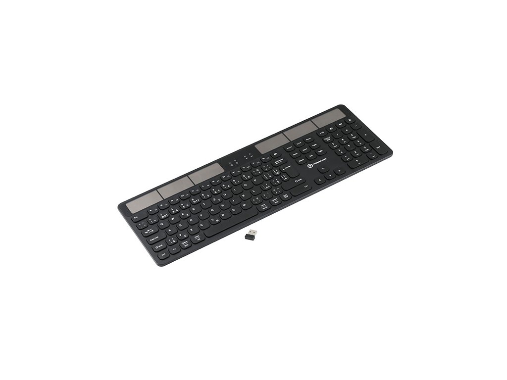 Bezdrátová klávesnice Powerton SolarSlim s CZ/SK rozložením klávesBezdrátová klávesnice, kterou můžete spárovat až se třemi různými zařízeními současně díky 2,4 GHz bezdrátovému přijímači a dvěma na sobě nezávislými Bluetooth kanály! Přepínejte se snadno mezi připojenými zařízeními pouhým stiskem klávesy. Díky super tenkému modernímu designu klávesnice skvěle vypadá a psaní na ní si ihned zamilujete díky velmi nízkému profilu kláves evokující psaní na notebooku. Zabudovanou baterii navíc nemusíte vůbec nabíjet, solární panel se o neustálé nabití postará. Stačí jen mít klávesnici položenou na dobře osvětleném místě (sluneční světlo nebo dobře osvětlená místnost). Skvělým pomocníkem pro prodlouženou životnost baterie je jistě i uspávací mód.