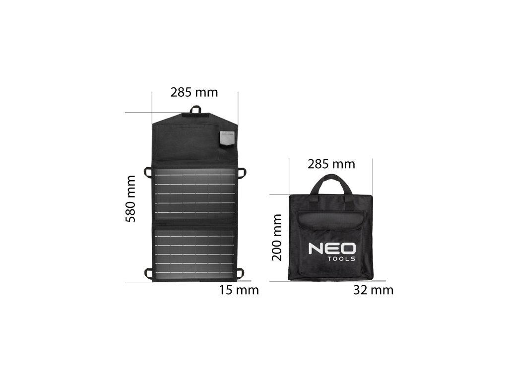 Přenosný solární panel s nabíječkou, Neo Tools, 15 W, 90-140