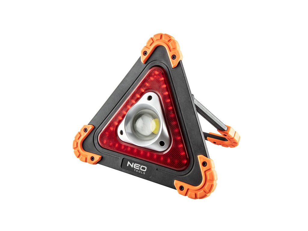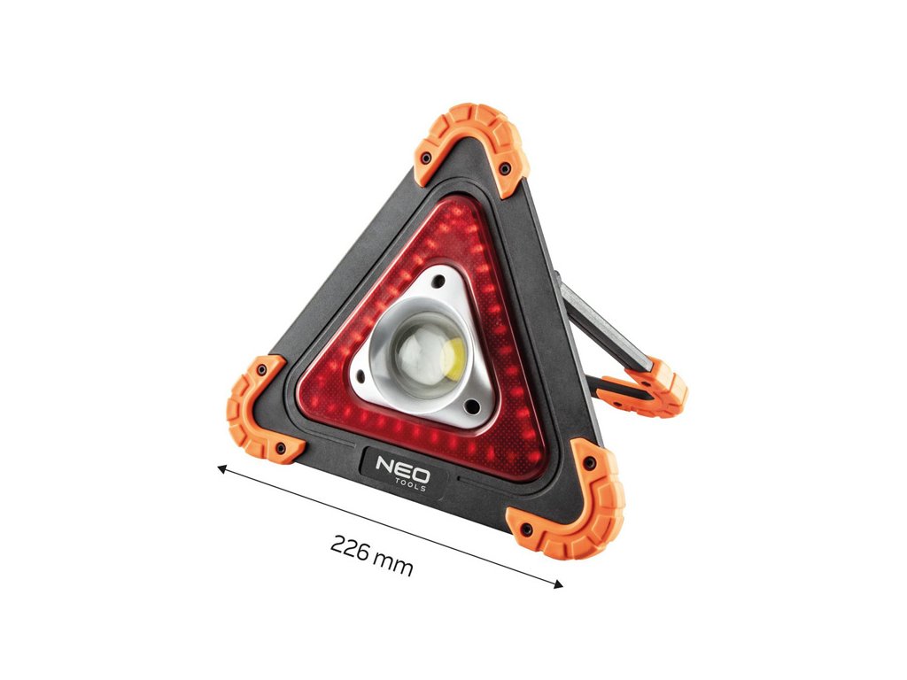 Trojúhelníkový akumulátorový LED reflektor NEO TOOLS 99-076 s funkcí výstražného varovného blikajícího červeného světla