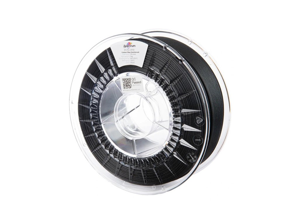 Použitá uhlíková vlákna dodávají vláknu extrémně vysokou tuhost a zároveň snižují křehký lom typický pro jiné uhlíkové kompozity na bázi PETG. Vlákno PCTG CF10 umožňuje tisk dílů se zvýšenou tvrdostí a pevností v tahu oproti klasickému PCTG. Použití uhlíkových vláken zvyšuje tepelnou odolnost filamentu, dále snižuje smrštění a dodává potištěným modelům charakteristický „uhlíkový“ matný vzhled.