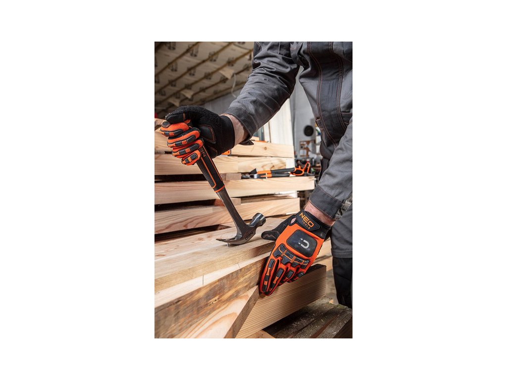 Klešťové kladivo, 450 g, 25-101, NEO, nezbytné jak pro profesionální práce, tak pro použití v domácnosti. Tento model je určen zejména pro zatloukání hřebíků. Díky monolitickému designu je nástroj mimořádně pevný. Je vyroben z jednoho ocelového dílu. Čelo kladiva je indukčně kalené a broušené laserem. Dvoumateriálová rukojeť je potažena protiskluzovou vrstvou, která přispívá k pohodlí při práci. Navíc pohlcuje vibrace. Rukojeť je navržena procesními inženýry NEO a patentována. Certifikáty GS, TÜV Rheinland a výroba v souladu s německou normou DIN 1193 zajišťují spolehlivost produktu.