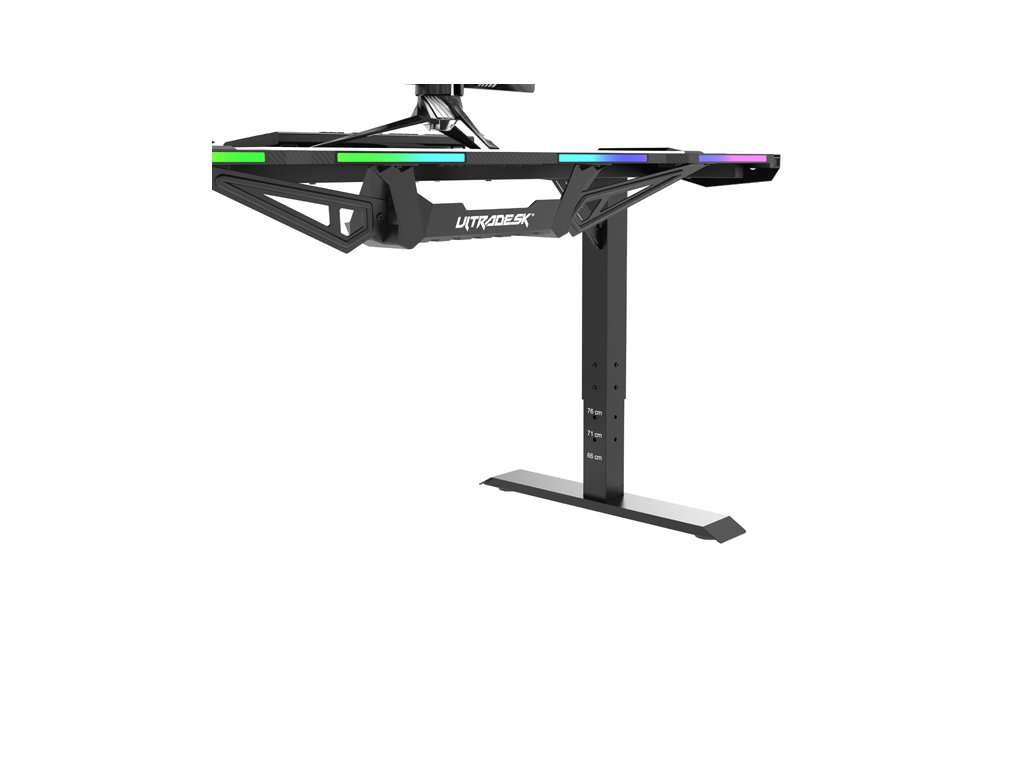 Výšku tohoto stolu lze snadno přizpůsobit vašim potřebám. ULTRADESK FORCE nabizí až 5 výškových úrovní, které nastavíte výběrem příslušného otvoru v nohách. Výškové úrovně se pohybují od 66 do 86 centimetrů. Nastavení navíc zabere pouze pár minut a nevyžaduje opětovnou montáž stolu. Rychle a snadno! A nastavitelné nožky ? V případě nerovnosti podlahy vám ULTRADESK kryje záda!