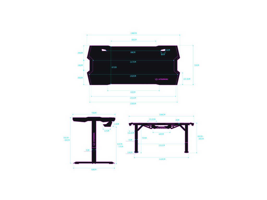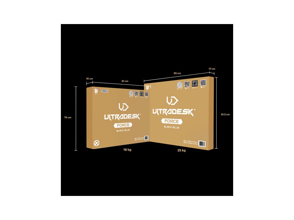 Ultradesk FORCE nabízí největší pracovní prostor ze všech modelů od tohoto výrobce. Deska stolu je pokryta speciálním karbonovým povrchem, který jej chrání před poškozením, trvalým zabarvením a vlhkostí. Pracovní plocha je namontována na širokém rámu vyrobeném ze silné oceli. Poskytuje dokonalé statické vlastnosti, i když je konstrukce zatížena velkým množstvím zařízení. Přední hrana plochy byla nakloněna, aby se zvýšilo pohodlí při používání klávesnice a myši. Spolu s psacím stolem obdržíte podložku, která pokrývá celou plochu pracovního prostoru.