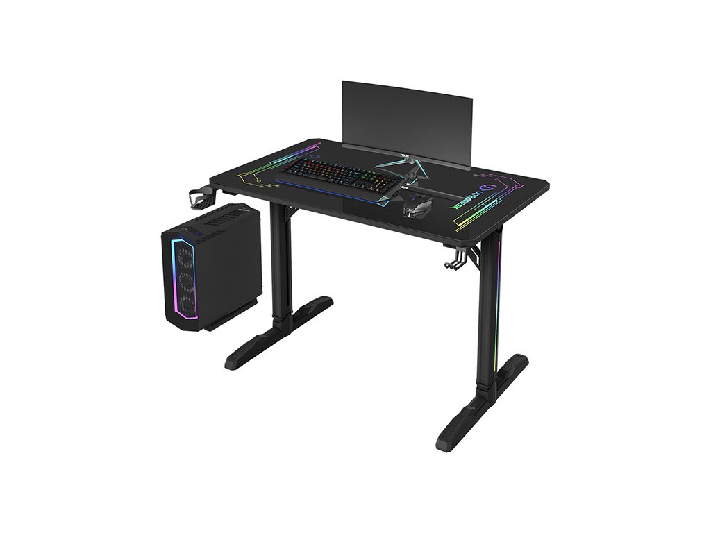 Deska stolu je vyrobena z tvrzeného skla ULTRA-GLASS. Tento materiál se vyznačuje speciální vnitřní strukturou, díky níž je celá pracovní plocha odolnější proti poškození. Technologie ULTRA-GLASS je speciální typ tvrzeného skla, které není náchylné k poškrábání a zaručuje vyšší nosnost. Pracovní plocha z tohoto materiálu skvěle vypadá, a navíc zvyšuje účinky podsvícení použitého v komponentech počítačové sestavy.