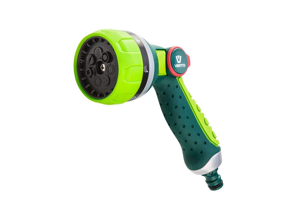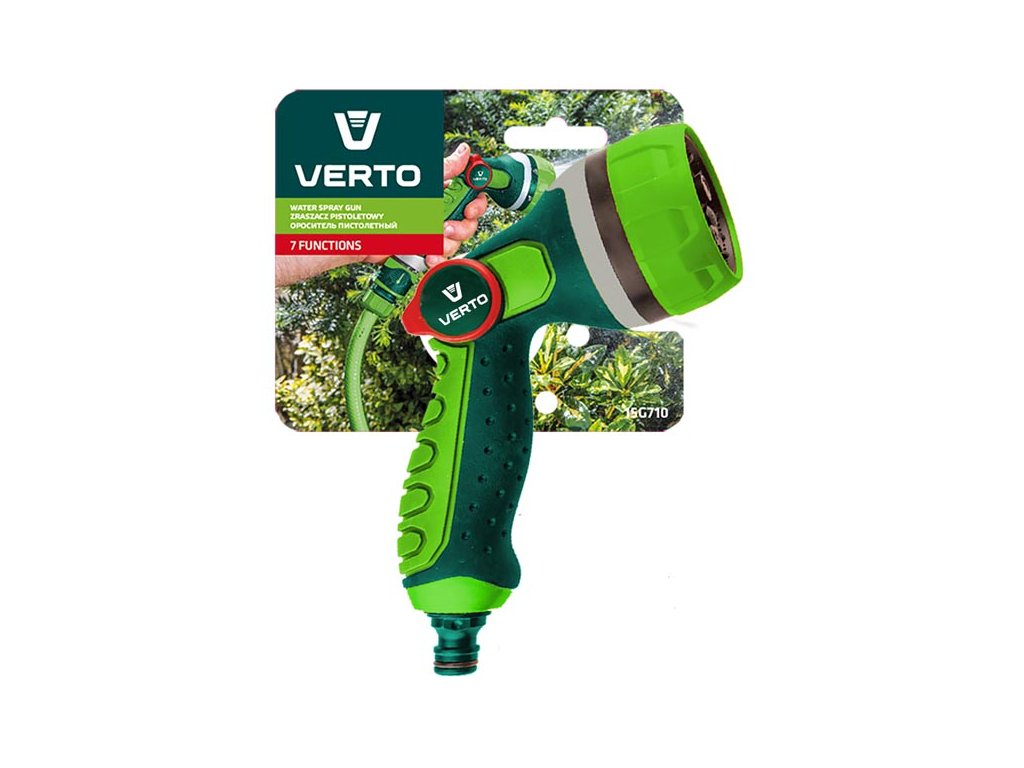 Verto pistolový postřikovač 15G710Pistolový postřikovač značky Verto se 7 funkcemi postřiku. Postřikovač umožňuje nastavení intenzity toku vody palcem. Ergonomická rukojeť skvěle padne do ruky a neklouže, což zvyšuje komfort při práci.