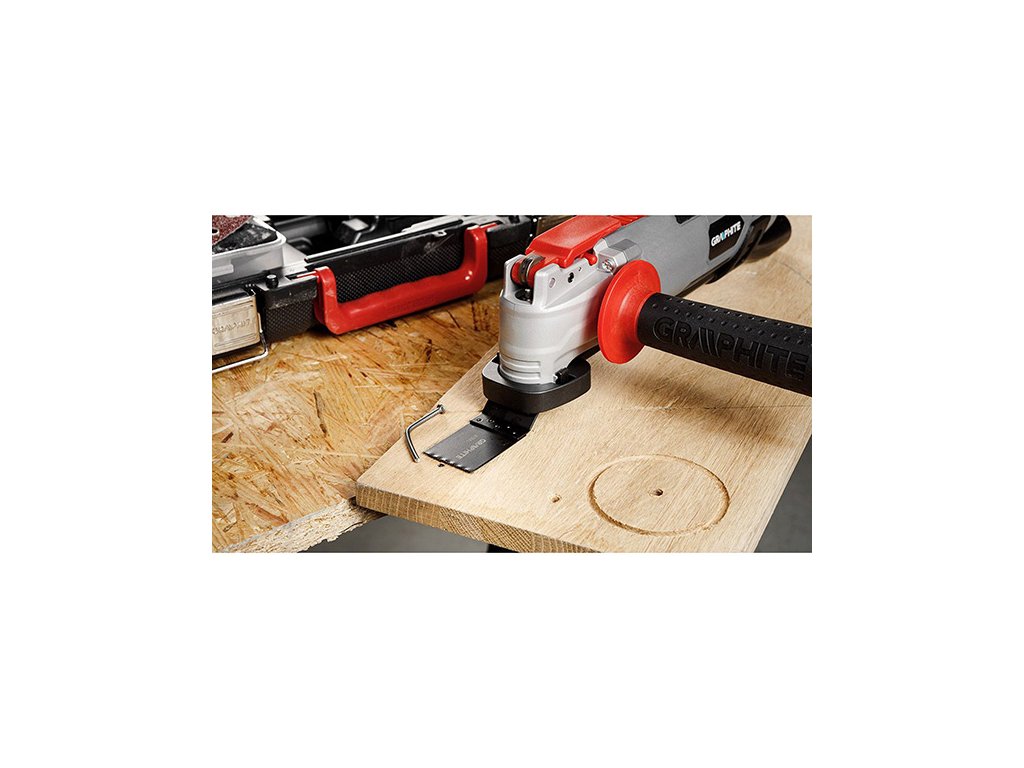 Multifunkční nářadí Graphite 59G025Multifunkční nářadí od firmy Graphite s motorem o výkonu 300W je vhodné pro řezání, broušení a škrábání materiálů, jako je například dřevo, keramika nebo kov. To díky 6 vyměnitelných nástrojů, které jsou pro tyto účely přímo dělané a jež lze jednoduše vyměnit bez nutnosti dalšího nářadí. Nastavitelná rychlost otáček je již samozřejmostí. Převodovka je vyrobena z kvalitní hliníkové slitiny. Díky dlouhému kabelu a ergonomickému tvaru je možno pracovat jednoduše jen jednou rukou. V užitečném kufříku také naleznete 5 kusů brusného papíru.