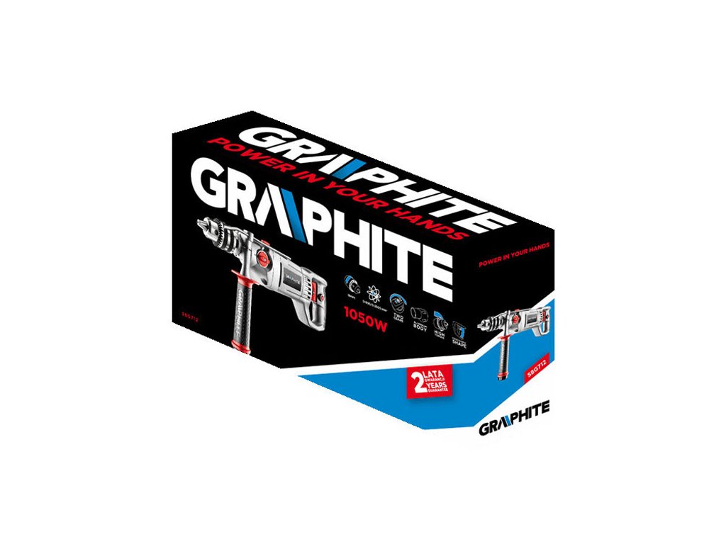 Příklepová vrtačka Graphite 58G712Kvalitní dvoupřevodová vrtačka Graphite 58G712 s motorem o výkonu 1050 W, disponující také nastavitelným směrem otáček zaručeně nezklame při jakékoliv práci, kde vrtání hraje hlavní roli.
